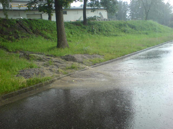 Neben der Waldstraße schwemmte der Regen auch an verschiedenen Stellen Kies und Sand auf die Straßen, so wie hier in der Maximilian-Kolbe-Straße