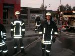 Das TLF und das MTF-L spuckten bei ihrem Eintreffen an der Einsatzstelle Atemschutzgeräteträger aus, die sich sofort für einen Innenangriff zur Menschenrettung bereit machten. Das Gebäude und die Lage waren vorher vom Zugführer erkundet worden, der zwei Arbeiter vorfand, die zuvor Schweißarbeiten in der Halle durchgeführt haben sollten. Nach einer Verpuffung kam es zum Brand und einer starken Rauchentwicklung, vor der sich ein dritter Kollege nicht mehr rechtzeitig in Sicherheit bringen konnte. Ihn zu retten war daher der erste Auftrag.