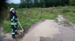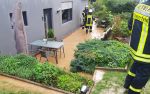 Der L?schzug Scheuerfeld errichtete mit Handwerkzeug des GW-Waldbrand provisorische Erdw?lle zum Ableiten des Wassers. Aufgestautes Wasser vor Hauseing?ngen wurde per Wassersauger abgesaugt.